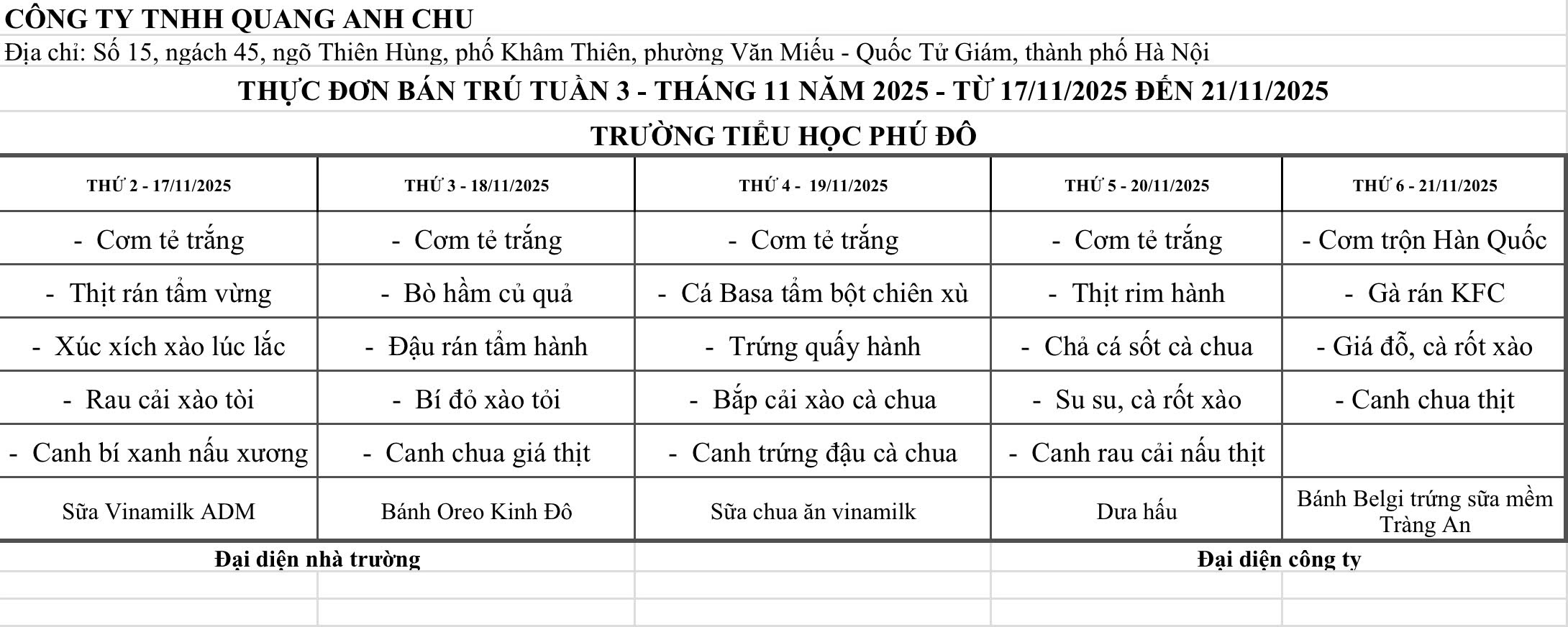 THỰC ĐƠN BÁN TRÚ TUẦN 3 THÁNG 11 NĂM HỌC 2025-2026