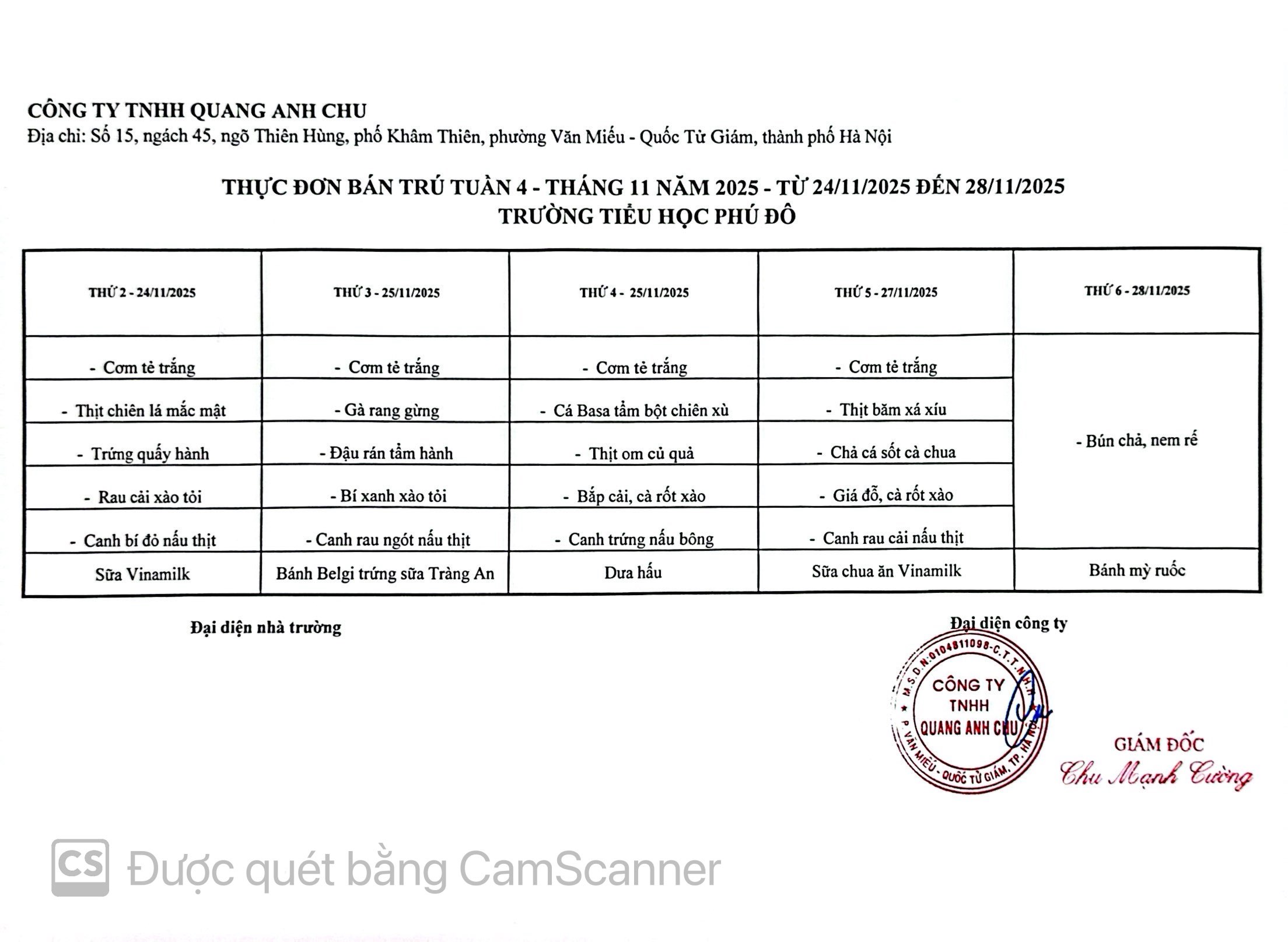 THỰC ĐƠN BÁN TRÚ TUẦN 4 THÁNG 11 NĂM HỌC 2025 – 2026